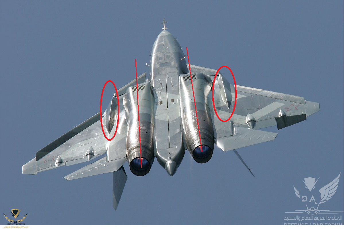شكل المحرك ايضا يزيد من الانعكاسات و في مفاصل السطوح المتحركة لا توجد حراشف مرنة لتغطيتها لتقليل الانعكاسات و الرسونانس ، لا توجد طرق لتخفيض البصمة الحرارية مثل الموجودة في الf-22 تقنيات الرام متخلفة عن ما كان موجود من عقدين في امريكا وكثير من الاشياء التي تجعلك تفكر! حتا مع وجود تحفض عن الافصاح عن قدرات الf-22 من امريكا و عدم دخول السوخوي الجديدة الخدمة ، ليس هناك اي مؤشر على انهم تقنيا في مستوى متقارب.