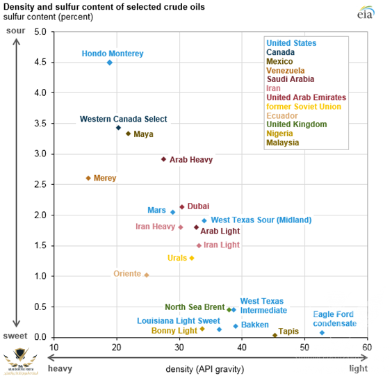 على سبيل المثال ، MARS أو WEST TEXAS SOUR قريبة من خصائص Arab Light ودبي