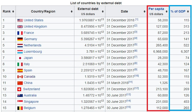 ستجد بوضوح تام ان اول 15 دوله من حيث الديون الخارجيه هى دول متقدمه وغنيه