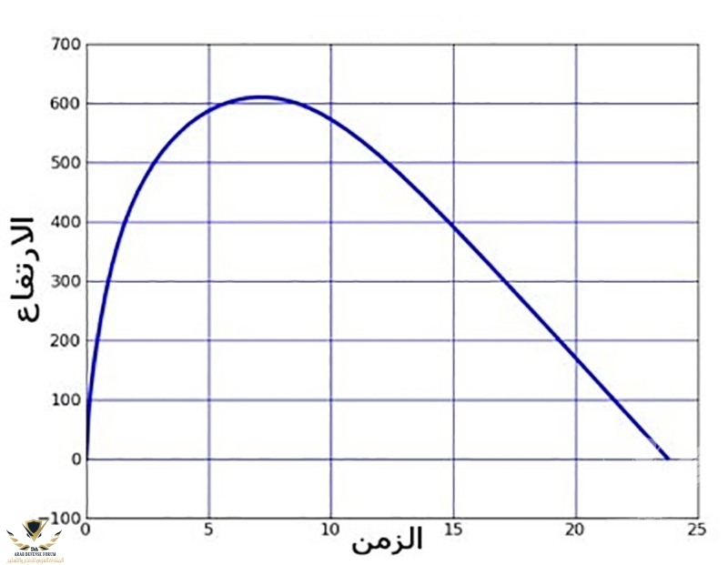 ارتفاع وزمن الرصاصة بعد اطلاقها في الهواء.
