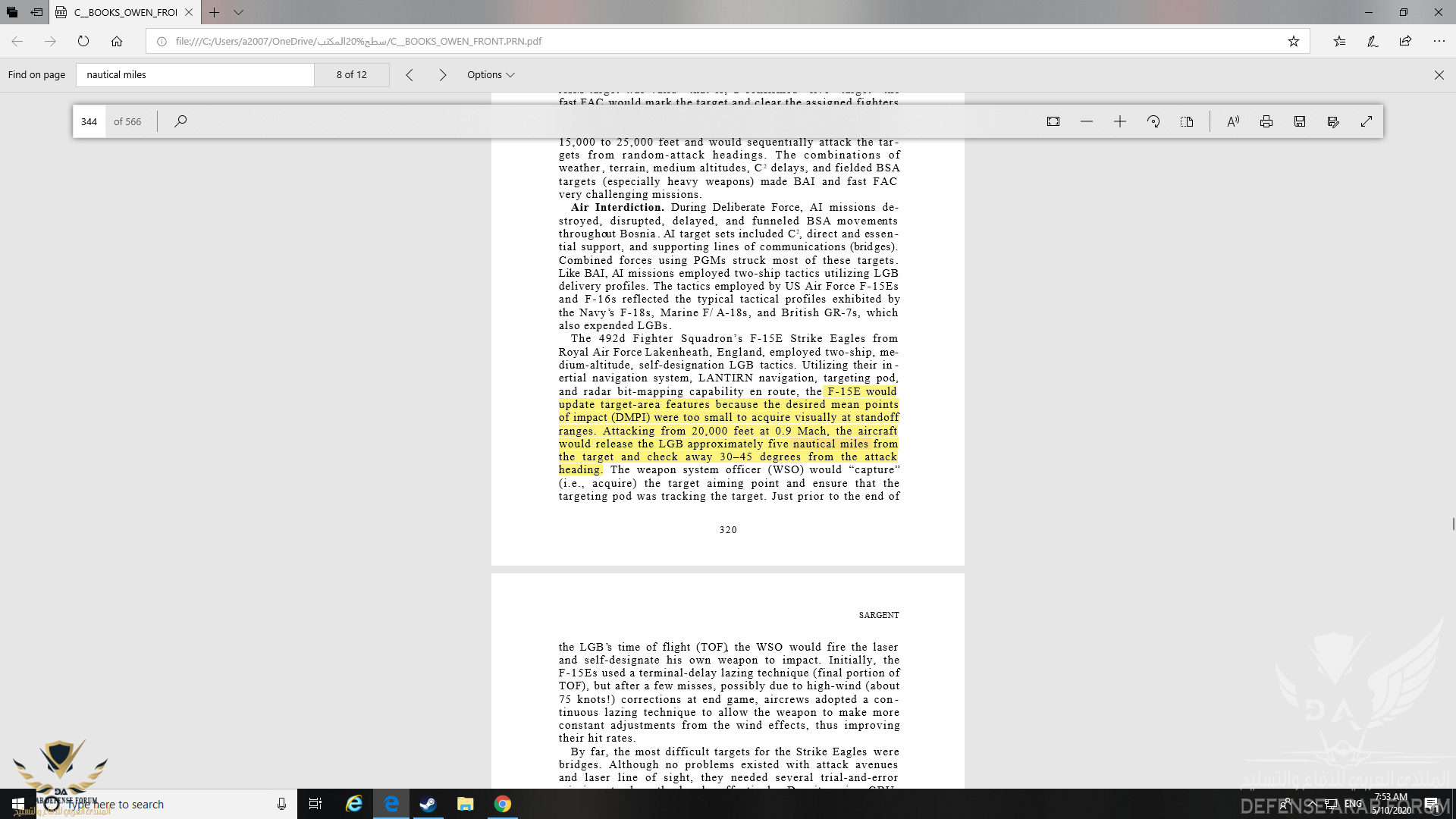 اما ماذكرته انا فهو طبقًا لسيناريو عملي حصل واقعيًا من ارتفاع 20.000 وبسرعة 0.9 Mach قدم حيث القيت قنبلة LGBs في عملية عسكرية من مدى 5 أميال بحرية أو 9km ...
