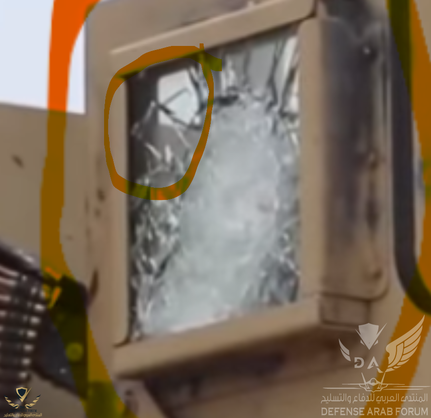 لو تركز في الزجاج الايسر تجد الزجاج مخترق في جزءه العلوي يعني اية رصاصة ستنفذ