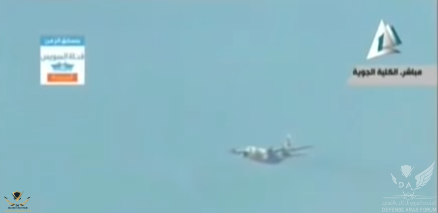 "فمن يمين المنصة تظهر الطائرة C-130 والتي قامت بالاستطلاع الالكتروني عن العدائيات المحتملة "