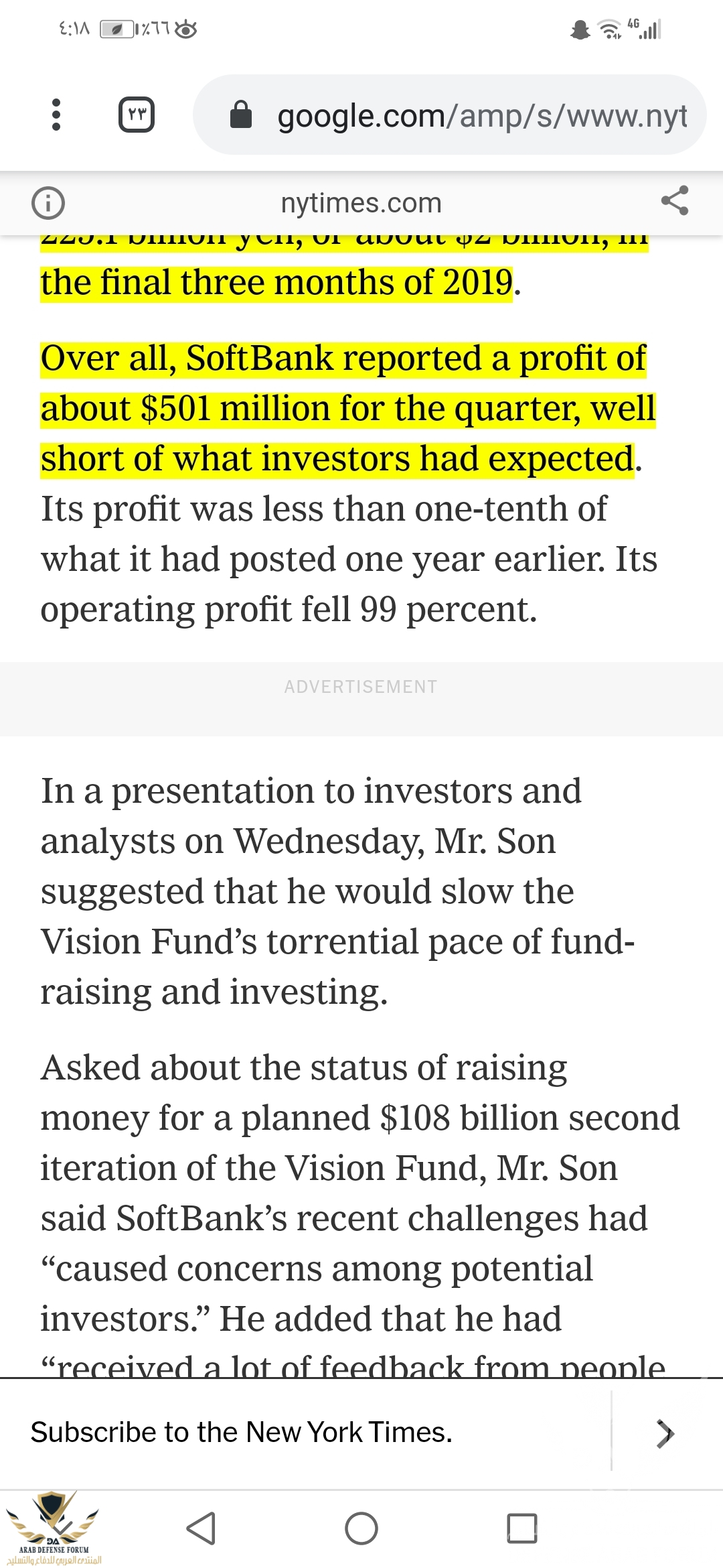 الصندوق مشكلته الاساسية مع شركتين wework و Uber باقي الاستثمارات شغالة.. حتى مع خسائر هالشركتين في الربع الثالث من 2019 حقق 500 مليون دولار ارباح في الربع الثالث