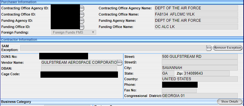 تم عقد صفقة بتاريخ 01/31/2019 من اجل البدء في بناء و تجهيز منصة طائرة Gulfstream من برنامج المبيعات العسكرية الخارجية لصالح المملكة المغربية و هو اول تأكيد على صفقة اربعة طائرات Gulfstream ISR/SIGNIT مخصصة للحرب الالكترونية و الاستطلاع و مجال الاستخبار الجوي اذ من المنتظر ان يتم تجهيز و تسليم اول طائرة بتاريخ 12/31/2020