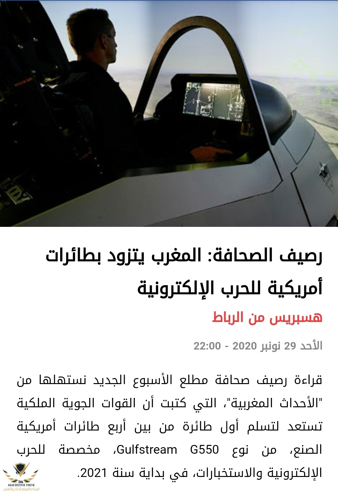 العقد يخص بناء البنية التحتية وصيانة المعدات إضافة إلى قطع غيار ...هذا في الصفحة المنشورة فقط...العقد موثق بسنة 2016 كما يشير الموقع الحكومي الذي أرفقت إن كان يخص طائرات sigint لكنا قد تسلمنها مع العلم أن الحديث عن الطائرات المغربية لم يبدأ إلى في سنة 2018 عموما ننتظر ونرى.