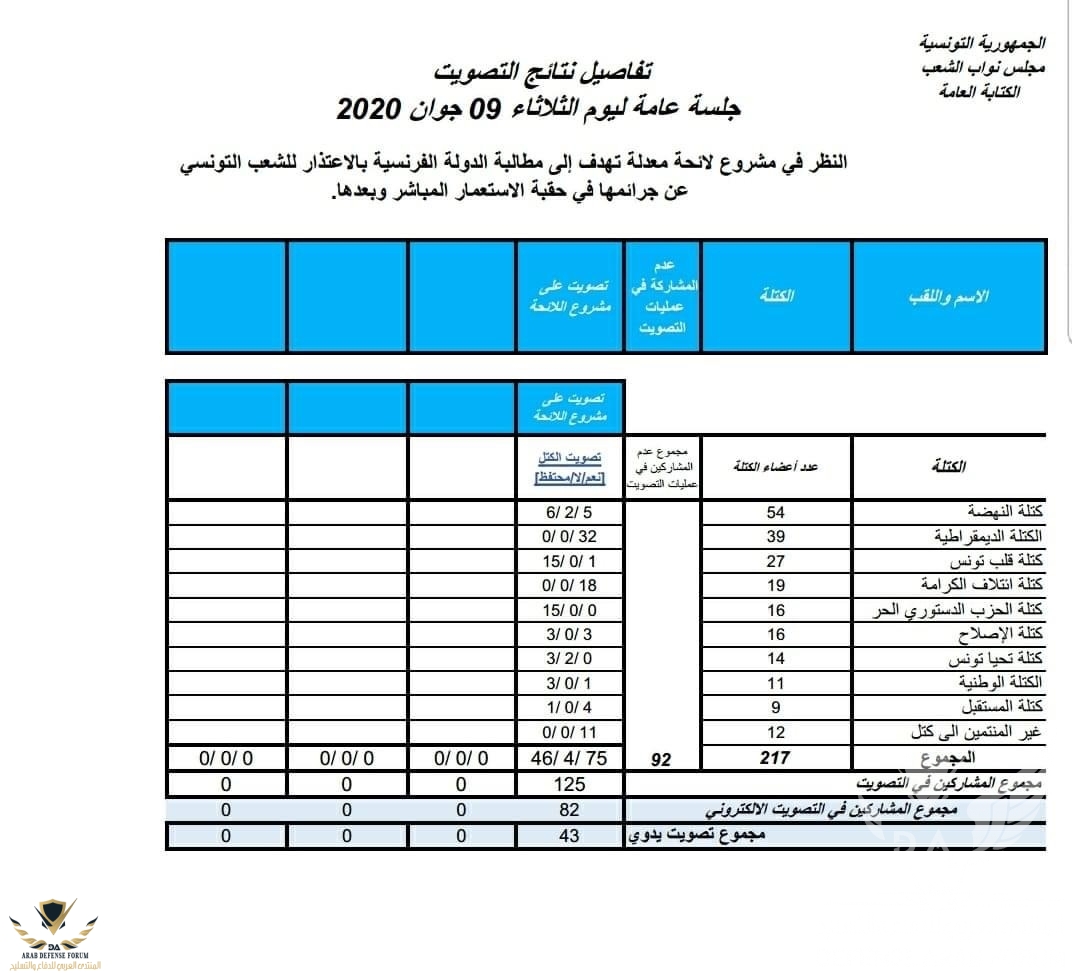 بالنسبة للبؤة عبير موسى اعتقد طلبت في مداخلة ان "الطلبات الموجهة في صلب هذه اللائحة مباشرة من البرلمان التونسي الى الدولة الفرنسية مخالفة للقانون، لان هناك الأعراف والبروتوكولات الدبلوماسية. رئيس الجمهورية هو المكلّف برسم السياسيات الخارجية وفقاً للدستور".