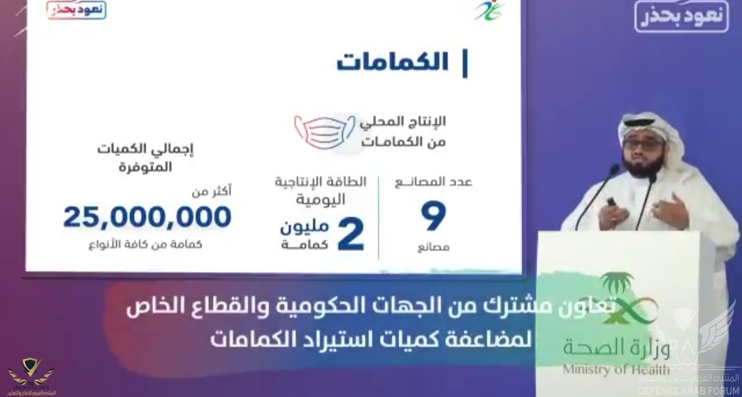 دخلنا في 4 شهور الازمه ووصل بس 2 مليون كمامهالانتاج ارتفع بالسعودية بشكل كبير خصوصا الأسبوع الماضي فاصبح :