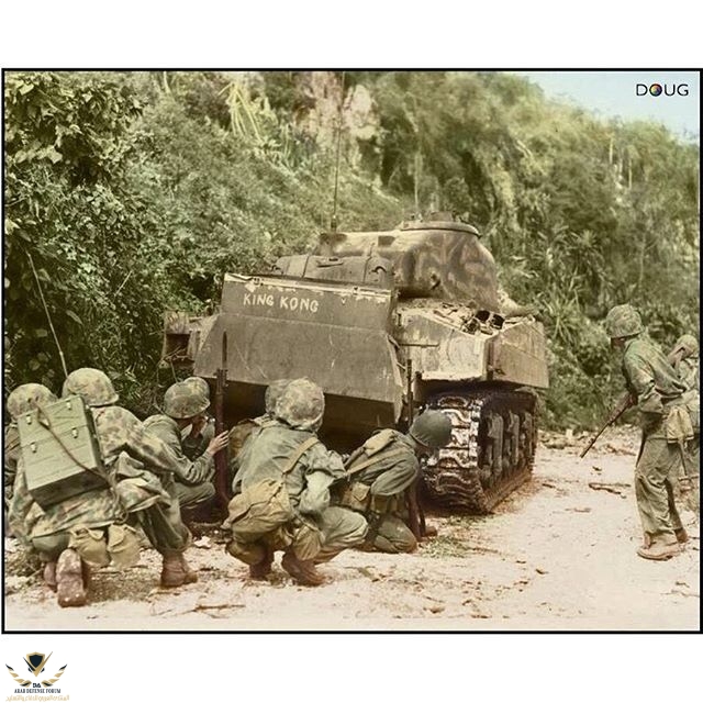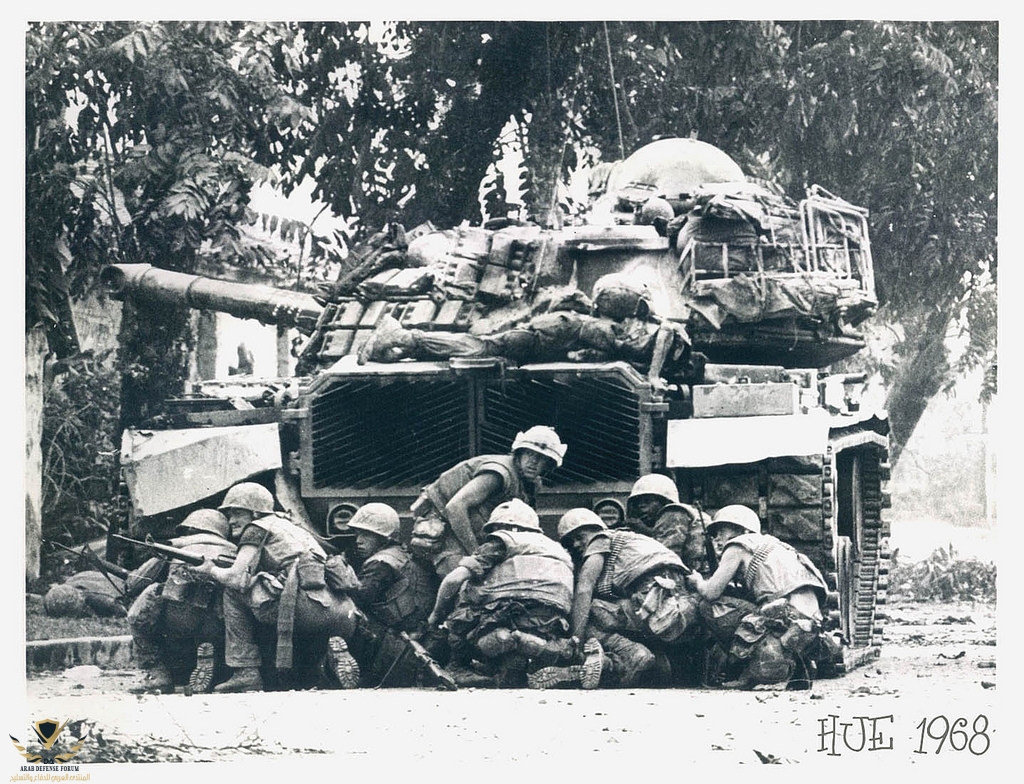 يتخذ جنود المشاه من الدبابات سواتر حماية لهم من نيران العدو المباشرة أثناء التقدم
