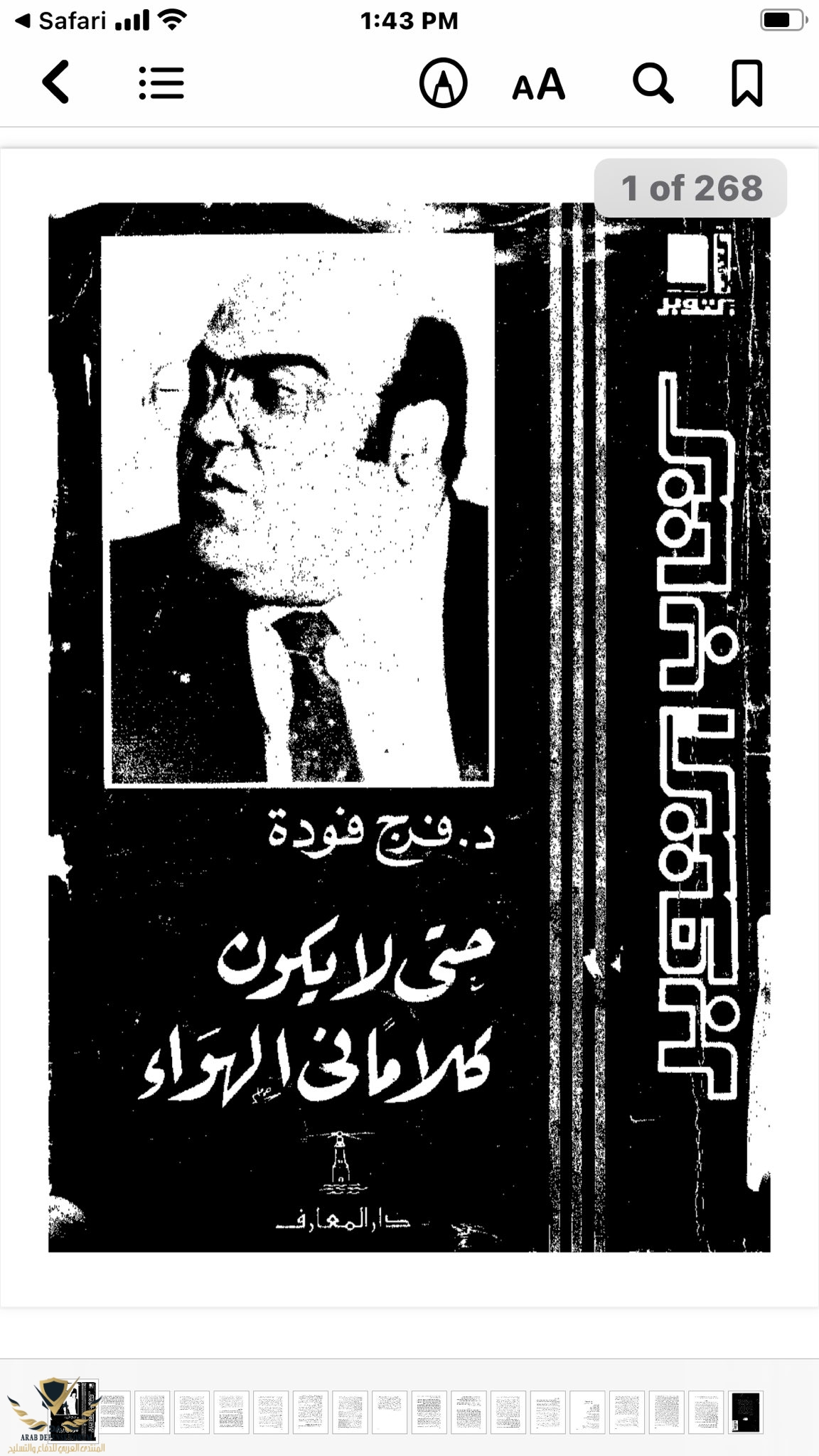المفكر المصري د.فرج فودة رحمه الله في كتابه (حتى لا يكون كلاما في الهواء) والذي طبع قبل ثلاثين سنة يتنبأ بما تعانيه مصر الآن مع الحبش.