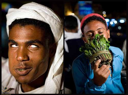 الحمد الله مش عندنا في مصرإسمه قات موجود فى بعض الدل العربية والضرب عندهم بيسموه تخزين وتلاقى الى بيضربو طول النهار عمال ياكل منه زى شرب الشاى عندنا من أعراضه جنون العظمة وانه بيخليك متحسش انك بتعمل حاجة غلط كل حاجة بتحس انها صح زى البرشام كده