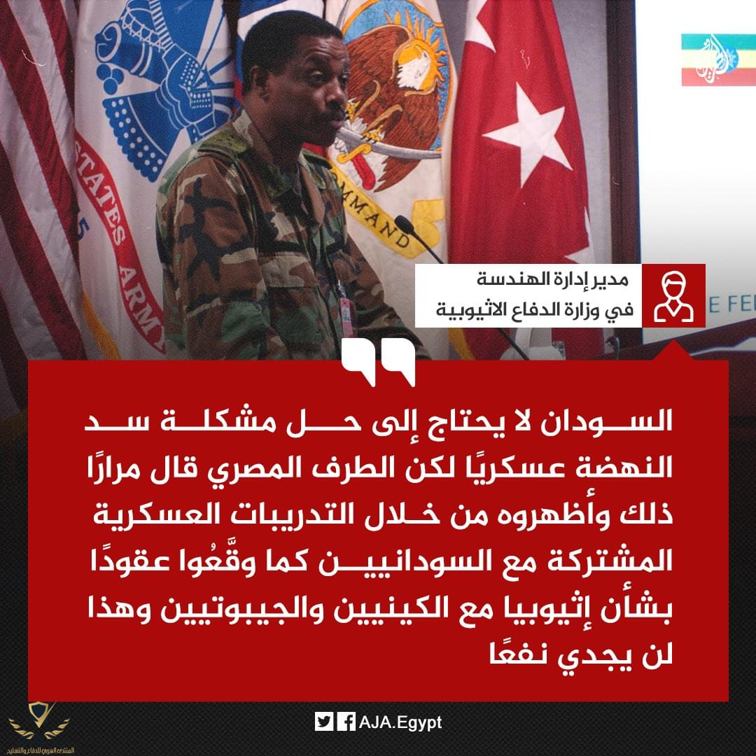 وصرح الجنرال الإثيوبي ردا على سؤال حول ما إذا كانت بلاده مستعدة لحل عسكري: "نعم، فكل بلد مستعد للدفاع عن الوطن، ونحن مستعدون لصد أي عدو يحاول تقويض سيادتنا، نحن جاهزون للدفاع".