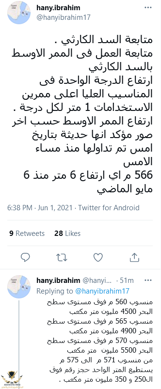 و كمان بيفسر حاجات زى دعوات التظاهر و التصعيد على الفضاء الألكترونى من جهات معينة مؤخرا و الاصرار الغريب على أن الملء الثانى هو النهاية و ضرورة القيام بعمل عسكرى حالا بينما التصريحات الرسمية تتحدث عن حدوث الضرر