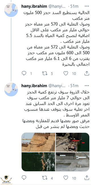 بالمعدل بتاع اثيوبيا أقصي ملئ هيبقي 7 مليار متر مكعب بزيادة 2 مليار عن السنة الي فاتت
