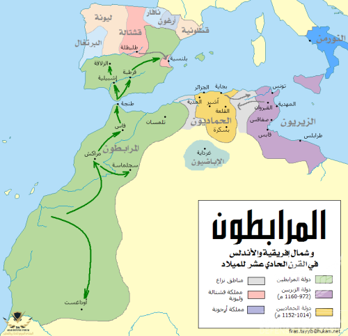 المرابطون غزو المغرب قادمين من جنوب بلاد شنقيط ( موريتانيا) وبسطوا سيطرتهم على المغرب ونصف الجزائر .