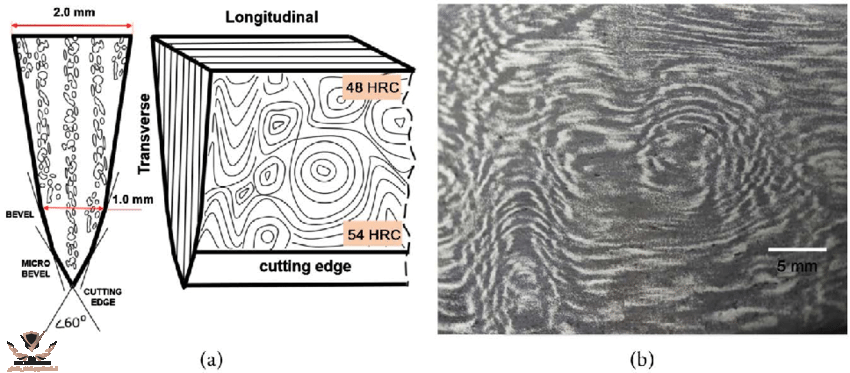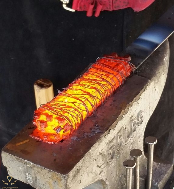 والطريقة الجديدة تعتمد على طرق ومزج عدة انواع من الحديد مما يعطي مزيج من الصلابة والمرونة وحتى جمالية العروق تظهر بشكل افضل