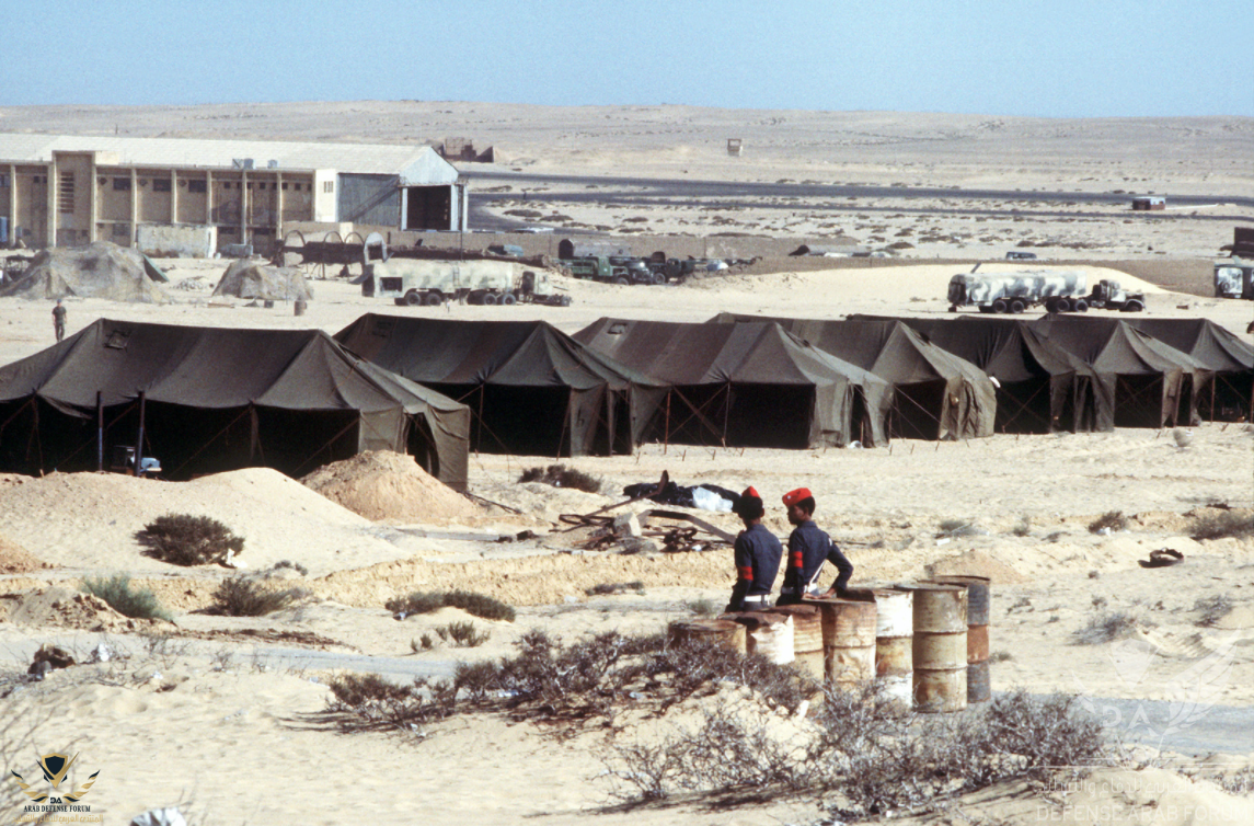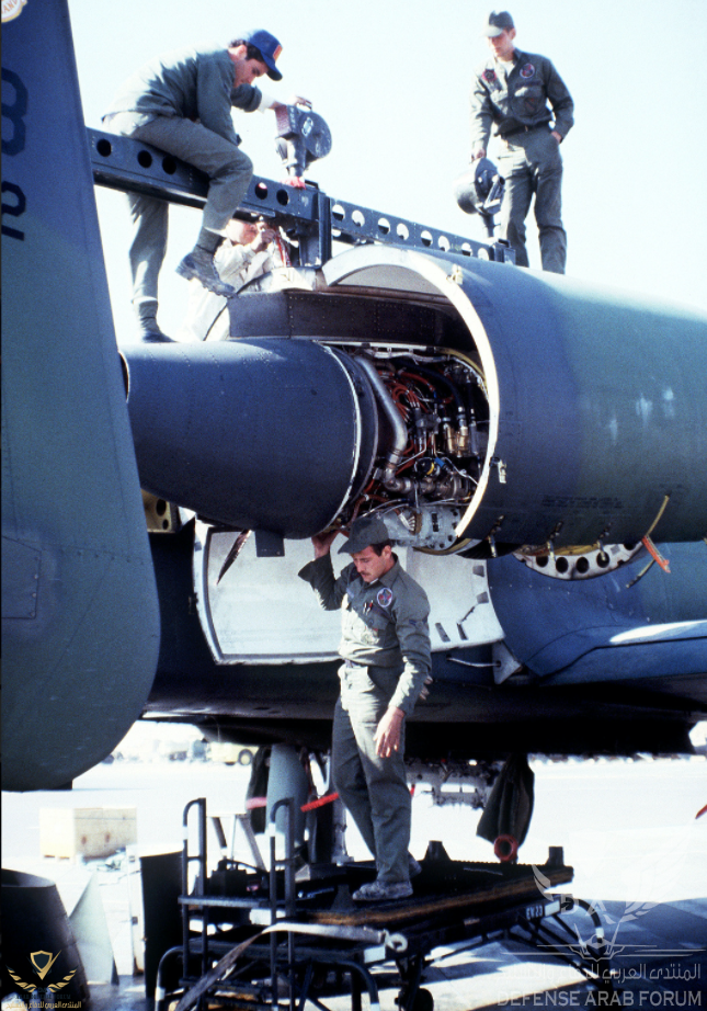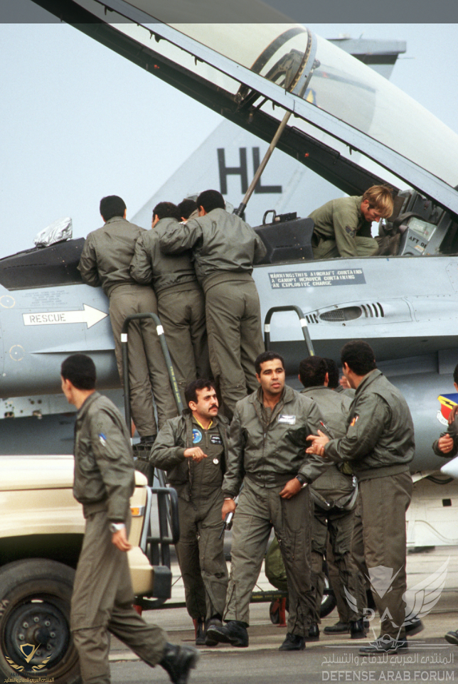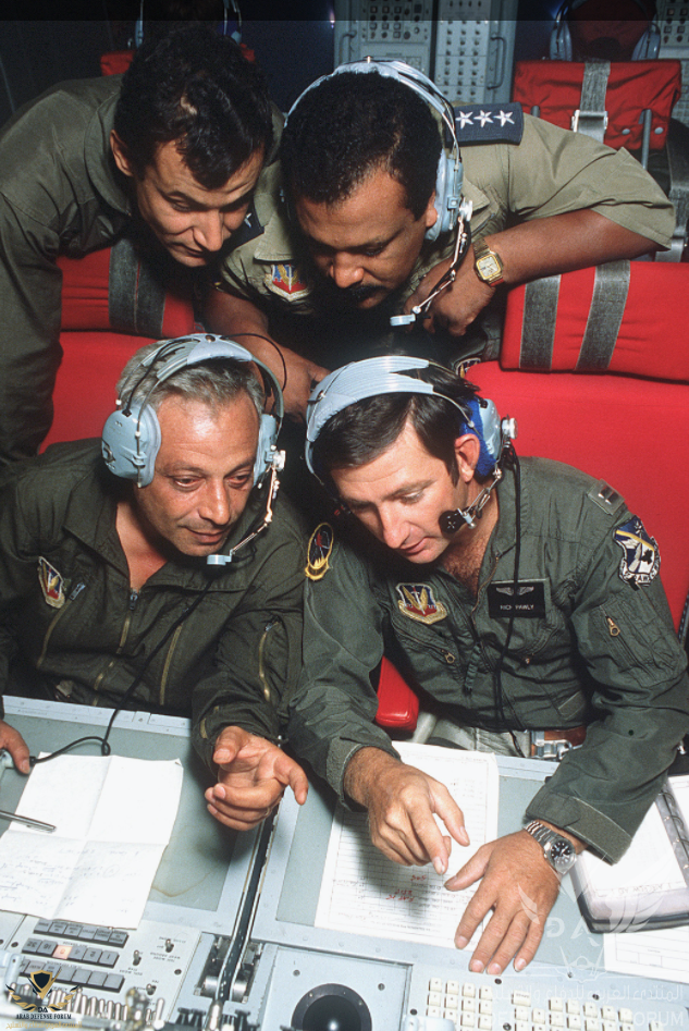 طيار يرتدي وشاح رأس عربي يخرج من طائرة من طراز F-111 أثناء التمرين المشترك BRIGHT STAR83. يشمل التمرين قوات من الولايات المتحدة ومصر والسودان والصومال في 9/10/1983