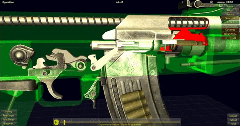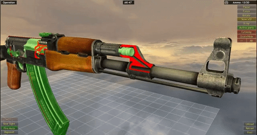 مجسم 3D يوضح طريقة تركيب مخزن الذخيرة وتعمير البندقية
