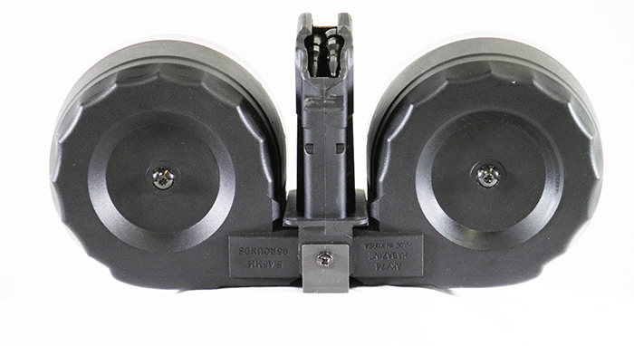 يتم الصاق مخزنين بطريقة مقلوبة لكي تسهل الاستخدام اثناء المعارك