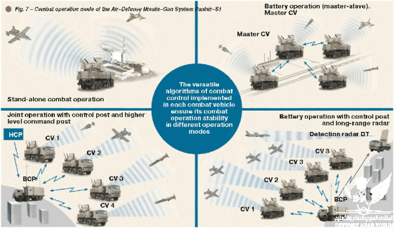 pantsir هو Stand alone system و يمكن أن يعمل ضمن بطارية مزودة بنظام قيادة وسيطرة + عدة عربات اطلاق + رادار للرصد Detection radar