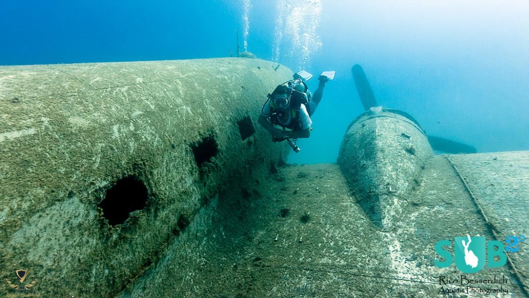 .بقايا هيكل طائرة نقل مغطى بالشعاب