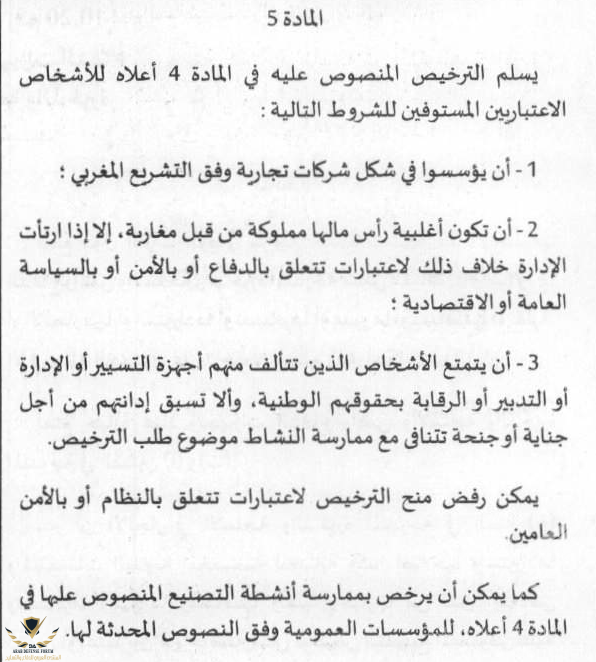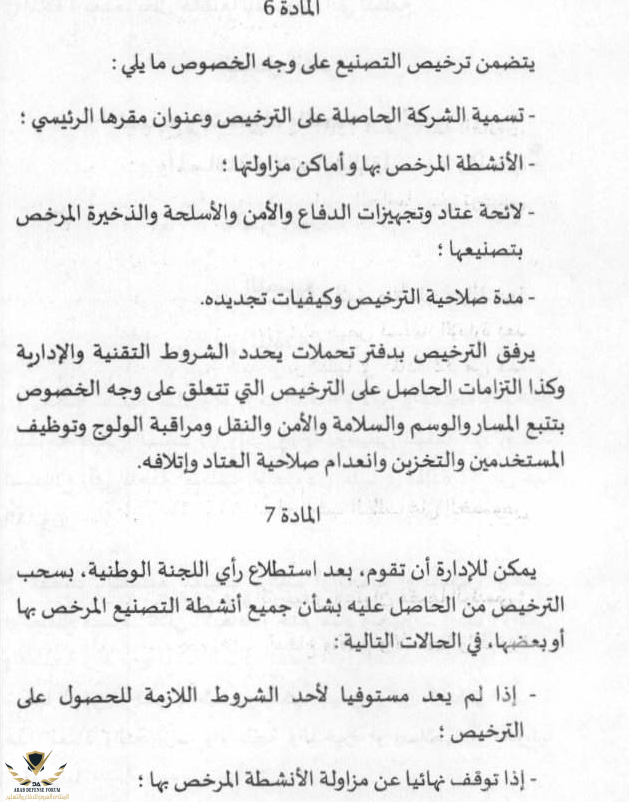 شروط إنشاء شركات متخصصة في الصناعة العسكرية :