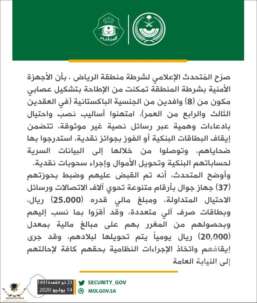 عصابة النصب بالرسائل النصية وسرقة الحسابات البنكية في قبضة شرطة الرياض