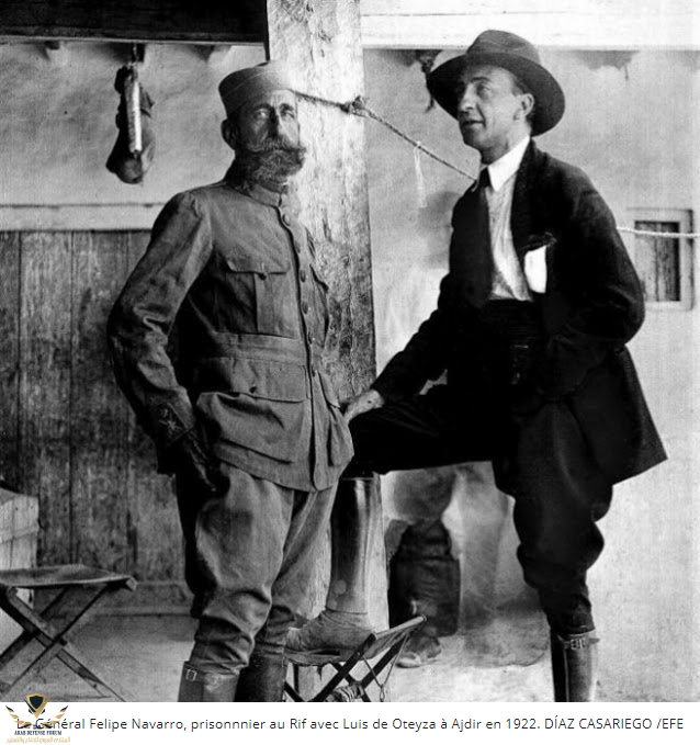 صورة محمد بن عبدالكريم الخطابى مع رجل الأعمال الإسباني هوراسيو إيكفاريتا الذي أرسلته الحكومة للتفاوض على إطلاق سراح الأسرى الإسبان بعد معركة أنوال
