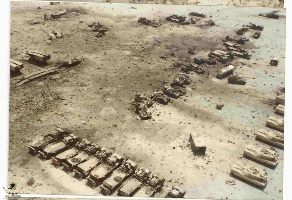 يمكن رؤية مجموعة متنوعة من المركبات في مراحل مختلفة من الضرر ، لكن حجم الحريق واضح. هناك مركبة إصلاح مصفحة M88 وصف من مركبات M113 APC و Command لم تصاب بأي ضرر كما هو ملاحظ في الصورة .