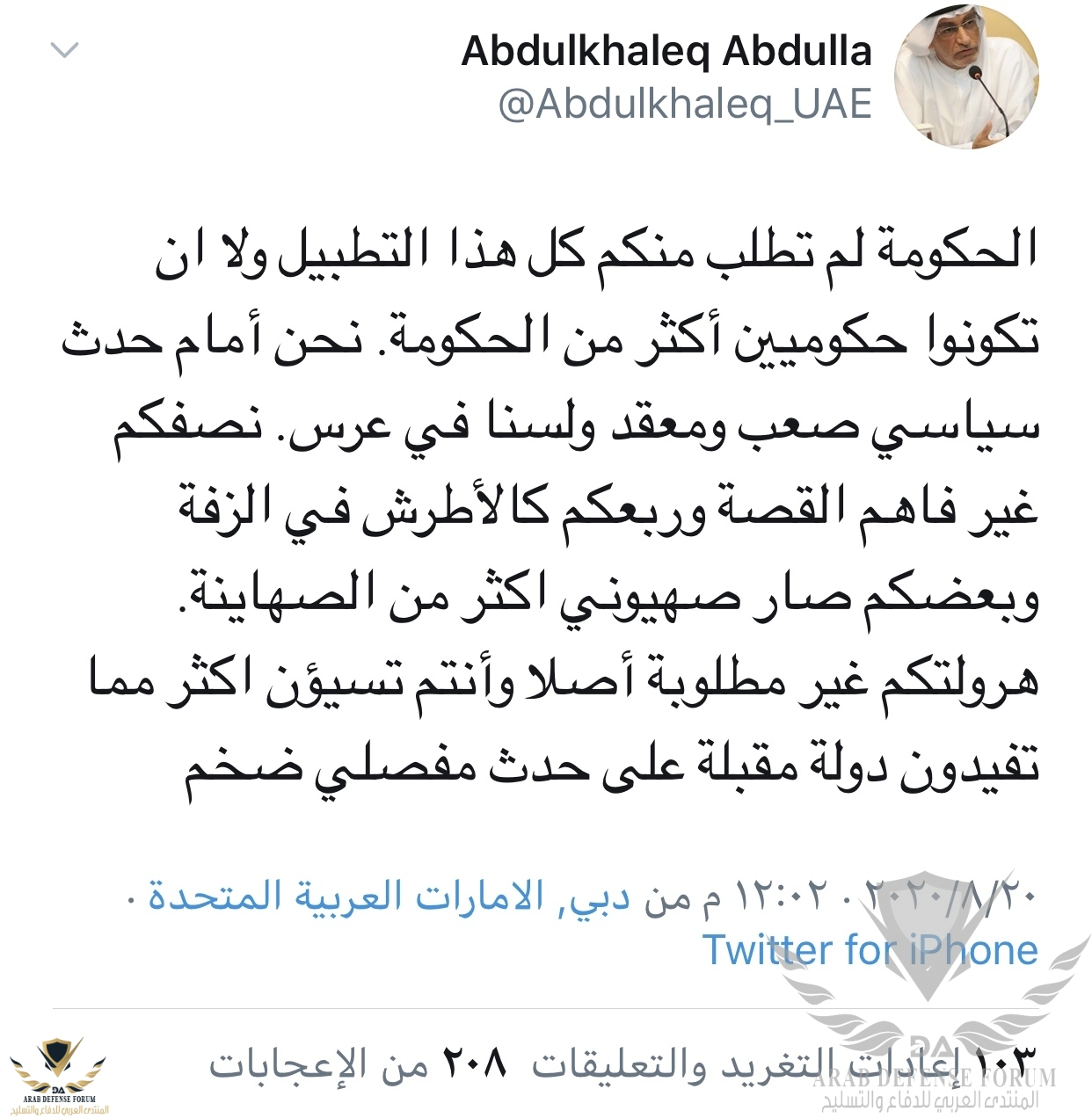 اها يعني مؤيد لكلام ضاحي خلفان ومعترف بحق اليهودههه تغريدة موفقة لكم ليست لنا ...