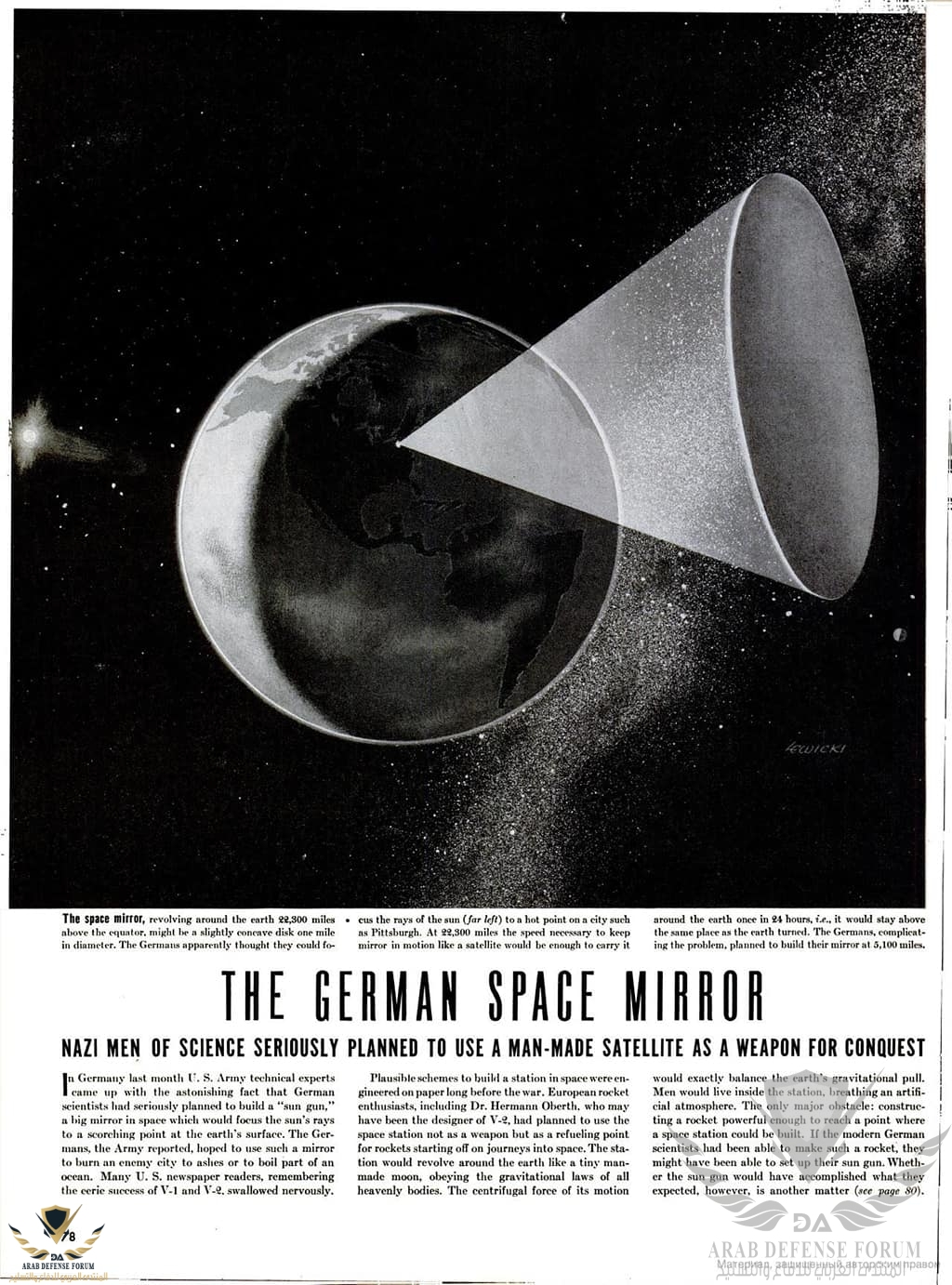 بما في ذلك القدرة على ذوبان السفن الحربية من الفضاء وقد حاول (فيرنر فون براون) وهو مهندس الصواريخ العمل على بناء أسلحة فضائية مماثلة للولايات المتحدة.