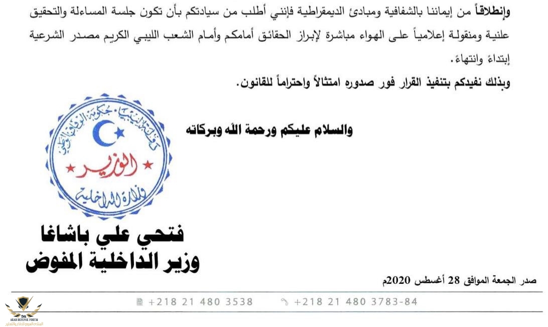 الوزير باشاغا لم يتم اقالته بل تم ايقافه احتياطيا حتى يتم التحقيق في التهم الموجه له والرجل وافق وقبل المثول امام القضاء