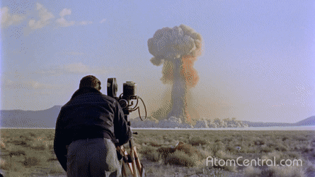 موجة الانفجار من تأثير تجربة تفجير نووية وهي تصل الى المصور لبعد المسافة تضعف قوة الموجه الى ان تتلاشي