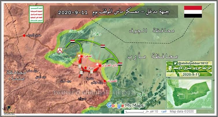 ومثل ماوضحت الحوثي يسعى السيطره على المناطق الجبليه في مأرب والجوف بشكل كامل وانزال القوات لحرب صحراويه تكون له الغابه فيها