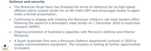 من وثيقة وزارة الخارجية الأسترالية حول الفرص التجارية مع المغرب لعام 2021