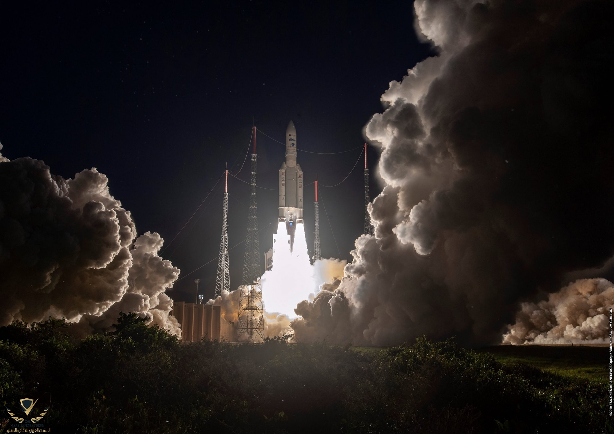 * الصورة الثانية للحظة إطلاق صاروخ Ariane-5 الحامل لقمر الإتصالات المصري TIBA-1.