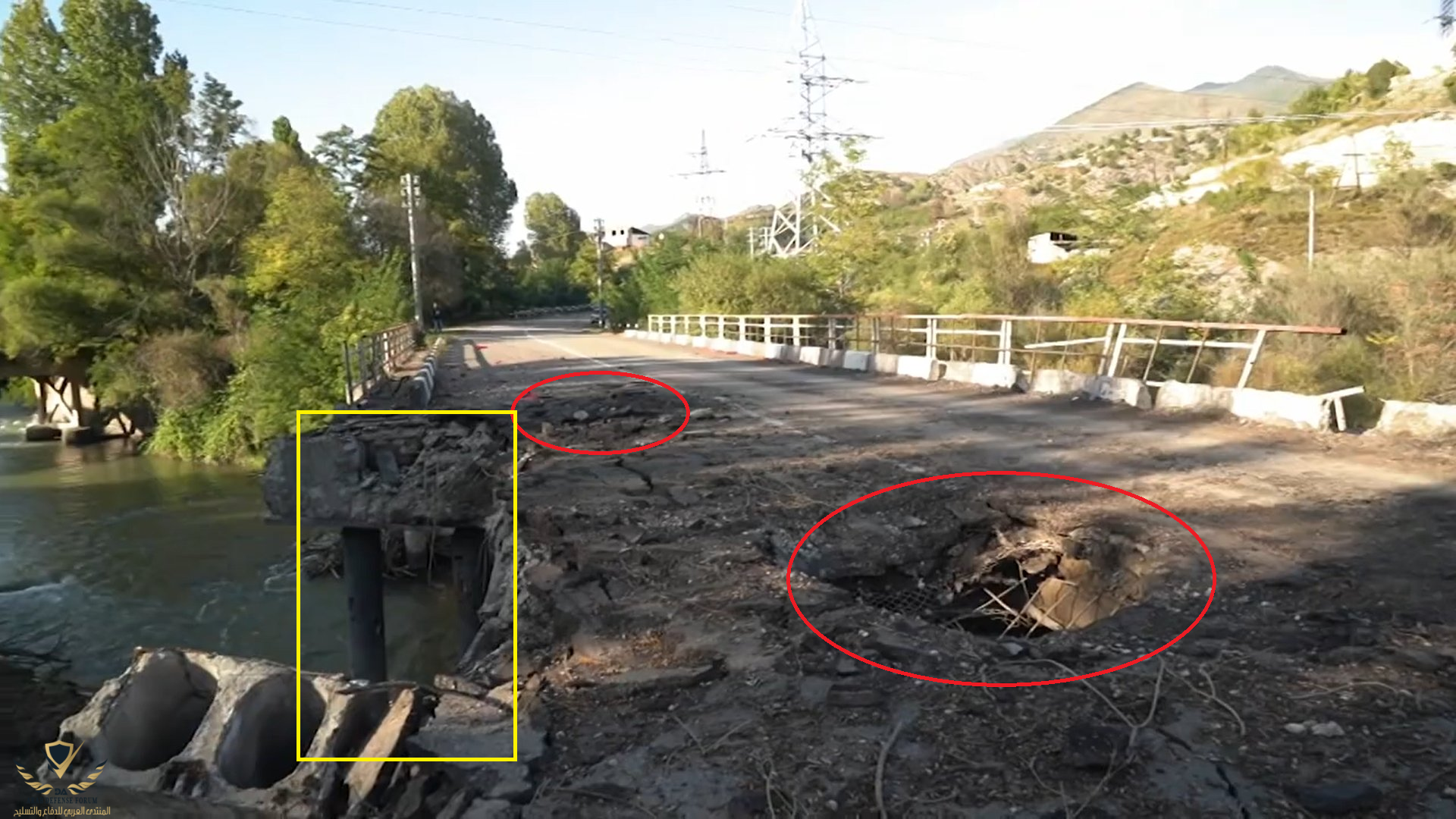 وكأن دبابة او شاحنة ستمر من فوق جسر فيه مثل هاته الاضرار.بعيدا عن التطبيل المقزز للمنتجات الصهيونية.