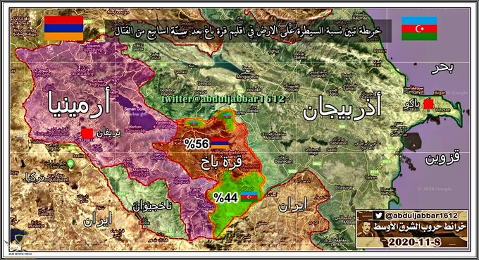 الجيش الاذربيجاني حرر 44% و الجيش الارميني مازال يحتل 56 % من الاقليم