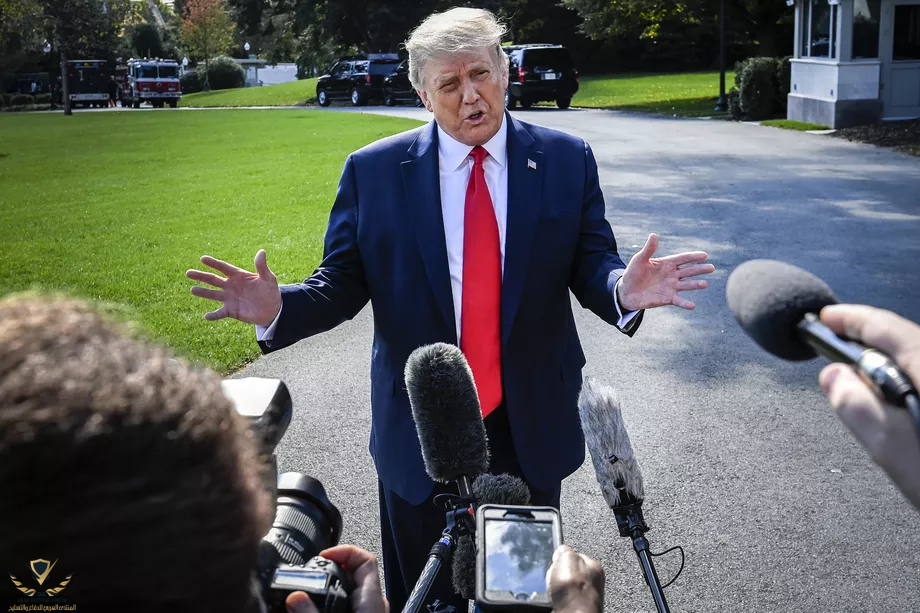 الرئيس ترامب يتحدث إلى المراسلين قبل مغادرته إلى ولاية مينيسوتا لحضور تجمع انتخابي وجمع التبرعات.