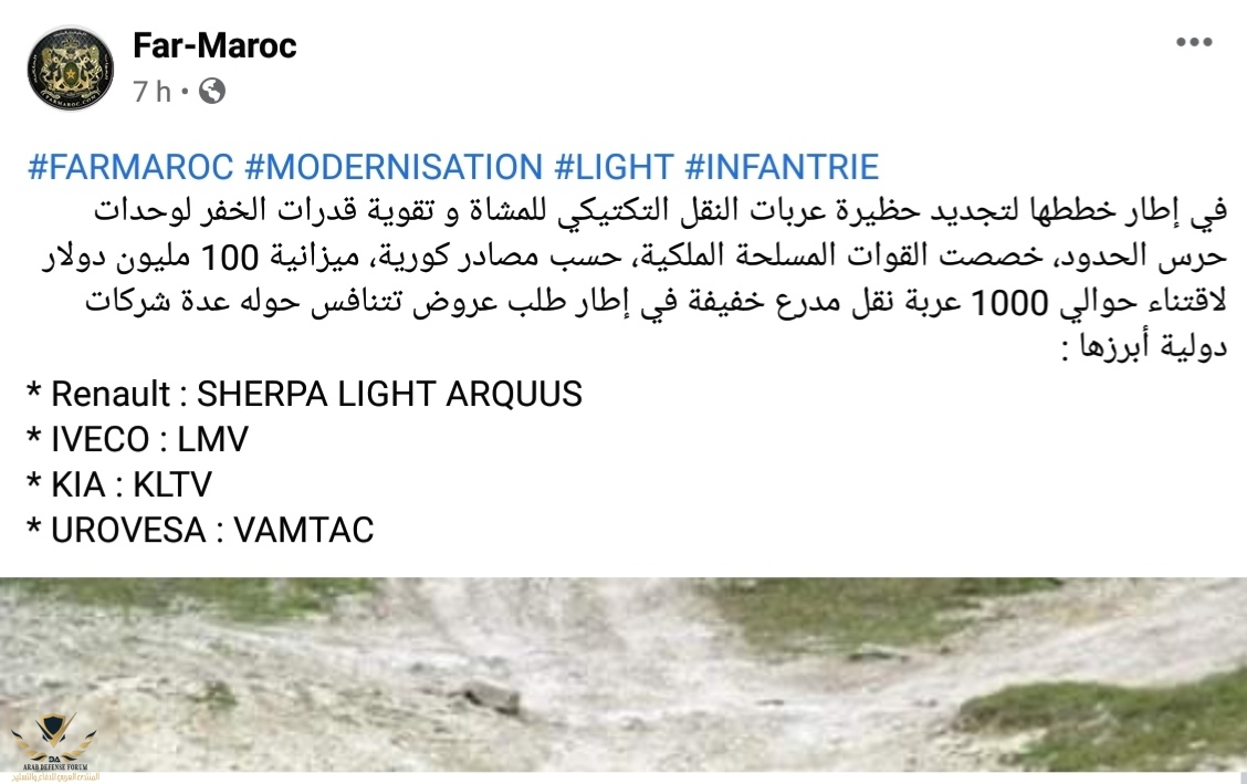 كما قام مسؤول المبيعات في القسم العسكري لشركة KIA بزيارة للمملكة في شهر فبراير المنصرم من أجل تقديم عرض لمنتوجاتهم أمام المسؤولين المغاربة.