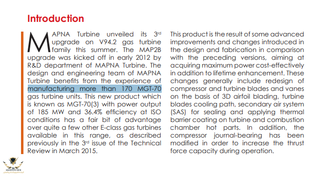 شركة سولزر مع انها تصنع توربينات خاصة بها و لكنها تستحي ان تقول علي عمليات overhaul بأنها صناعة كما يزعم الفرس