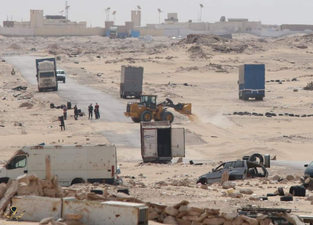 - تواصل الفرق الهندسية العسكرية و المدنية تعبيد الطريق الرابط بين نقطة الكركرات و النقطة 55 بالحدود الموريتانية و بناء جدار عازل لحماية مستخدمي الطريق من اي استفزاز قادم.