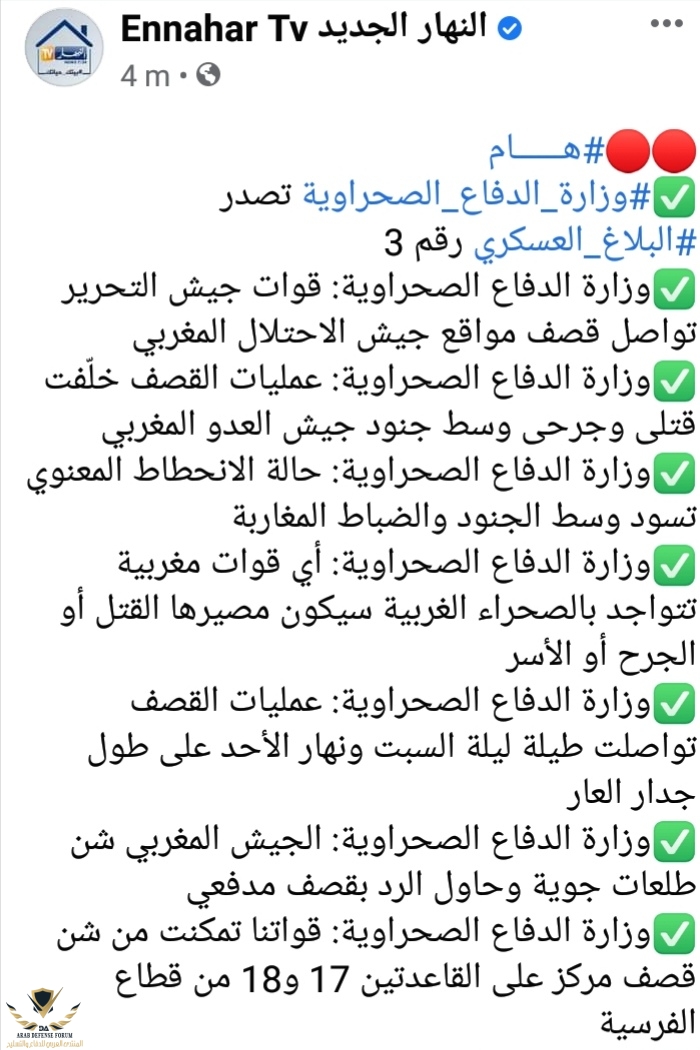 حسب اعتقادي المتواضع سوف يغلقون كامل الحدود مع موريتانيا بجدار ضخم جدا والله أعلماذا استمرت الاعمال الصبيانية وراء الجدار خلال اليومين القادمين اتوقع فرض واقع جديد والغاء المنطقة العازلة . التعزيزات تصل تباعا وهناك تنزيل محكم لسيناريو مدروس مسبقا من طرف القوات الملكية.