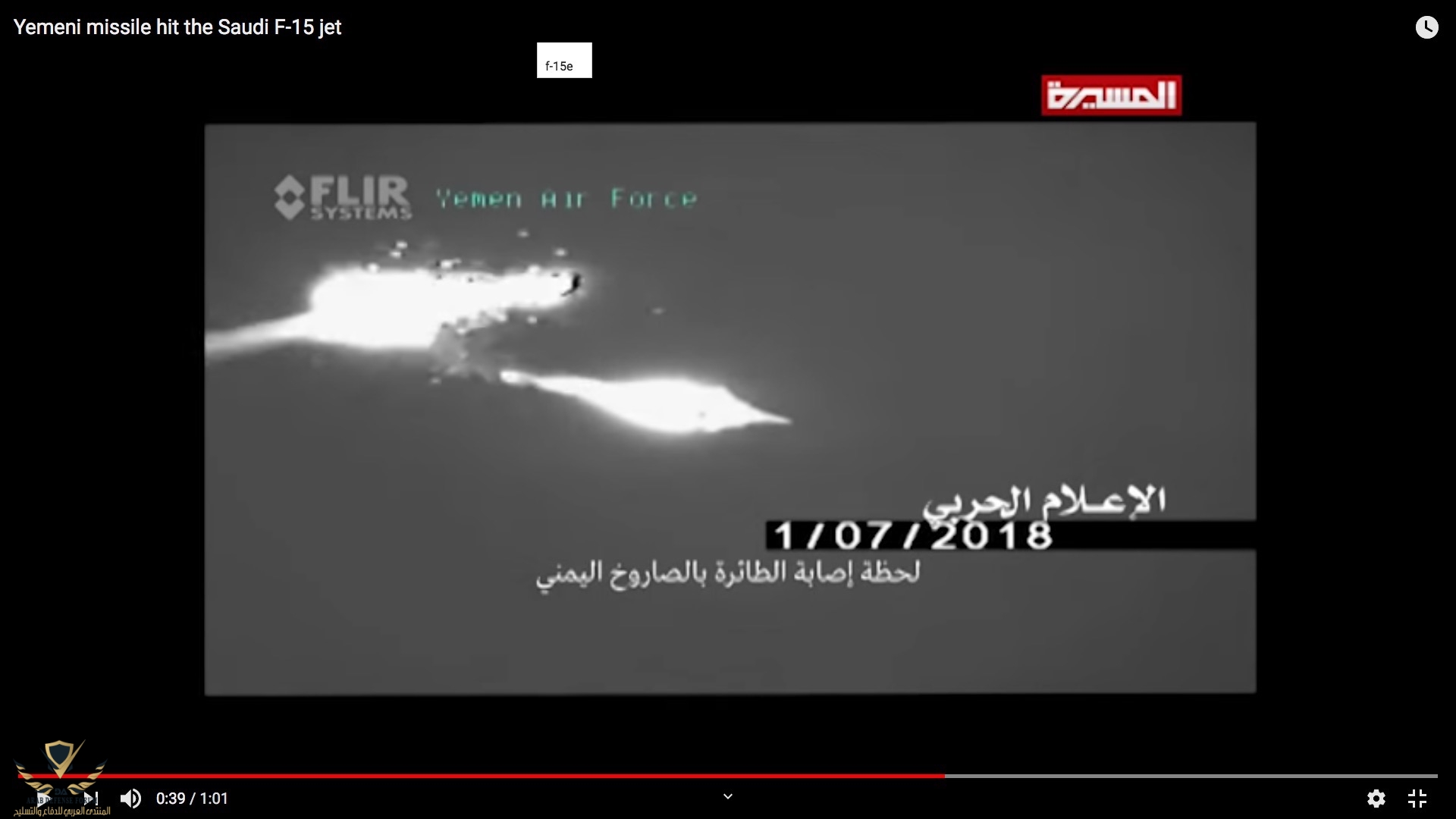 يعني سقوط F-15 صحيح ؟! المقطع واضح الصاروخ لم يضرب الطائرة استخدم المغنيسيوم وراح الصاروخ يطردها