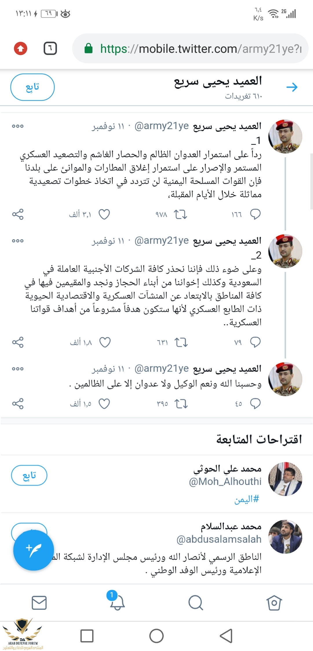الناطق بلسان الحوثي هدد قبل اسبوعين