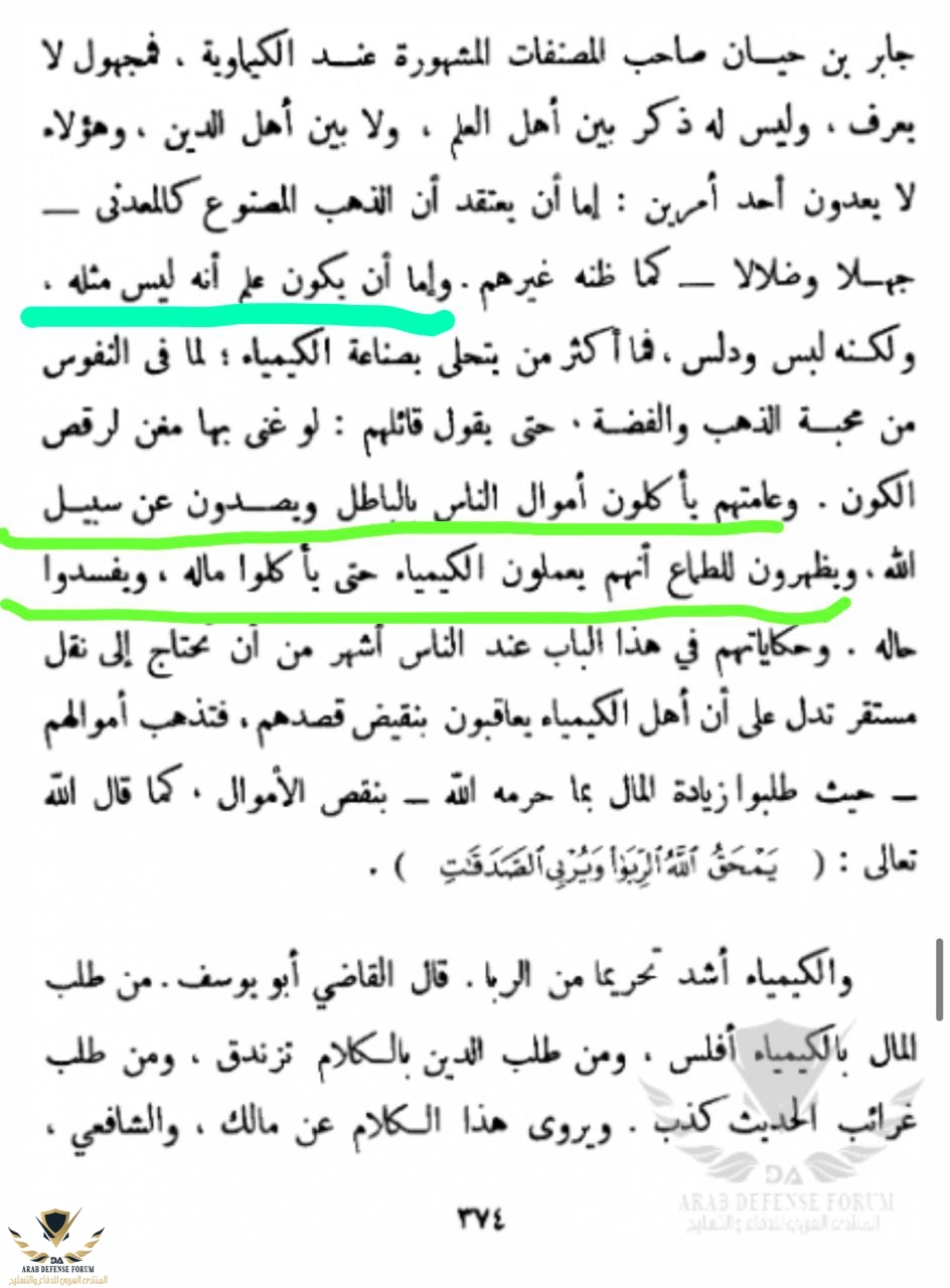 وهو يقصد باهل الكيمياء انهم هولاء الناس المدلسين