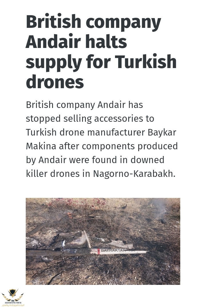 With the British company Andair Ltd. group has stopped the delivery of components of the "Bayraktar" drones to Turkey. According to Andair, a factual investigation requested by the Armenian Embassy...anfenglish.com