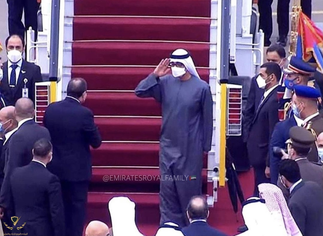 واضح حتى ان محمد بن زايد ادى التحية العسكرية باللبس المدني !
