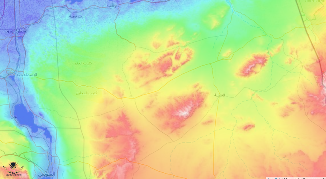 الخريطة بتقول ان فيه مناطق منبسطة لكن شمال سينا مش منبسط تماما ودا خريطة طبوغرافية لشمال سينا@مشاة البحرية