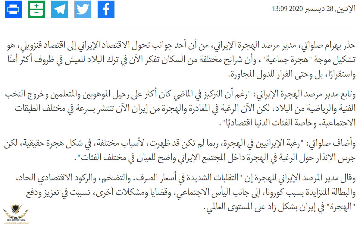 هجرة جماعية في ايران والخوف من تحول الاقتصاد الايراني الى اقتصاد فنزويلي